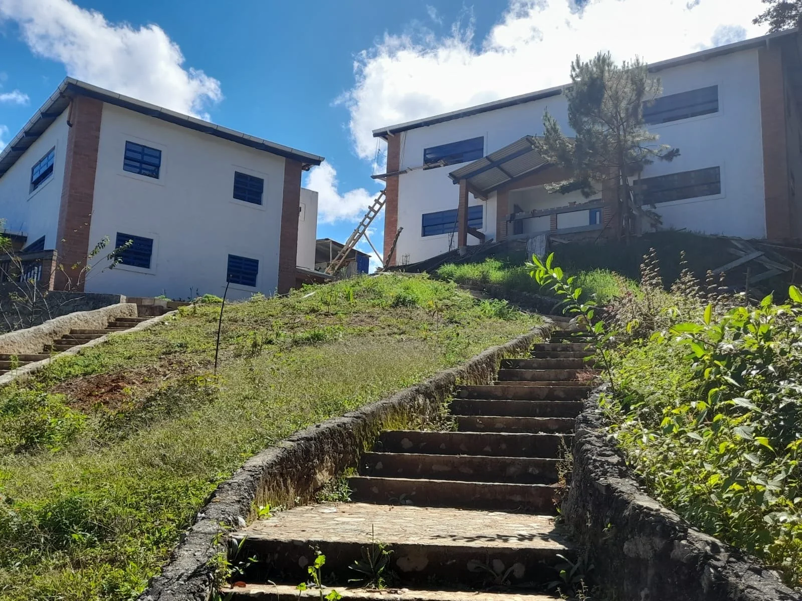 Includes upper grade classrooms, library, vocational training center, health clinic, dormitory, kitchen, and chapel.